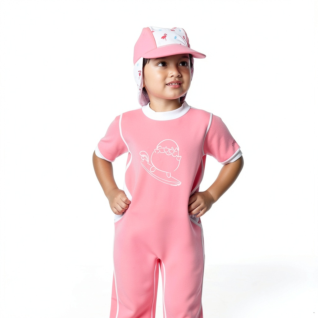 The Cheekaaboo Warmiebabes Suit is a premium swimwear sunsuit designed for baby girls, offering exceptional warmth and sun protection. Crafted from 2.2 mm double-lined neoprene, it retains body heat to prevent shivers in cool water, while the UPF 50+ fabric shields sensitive skin from neck to knees or ankles. This suit features a full-coverage design with fitted cuffs at the arms and legs to minimize water entry, keeping your child cozy and dry. Available in sizes for 6 months to 4 years, it includes playful themes like Dino, Flamingo, and Jellyfish in colors such as Pumpkin Orange, Salmon Pink, and Light Green. The inner layer uses long-mercerized fabric for softness against delicate skin, and it has passed SGS testing for safety, free from harmful chemicals like lead and phthalates. With a smooth back zipper and hook-and-loop fasteners, it’s easy to put on and stays secure during active play.